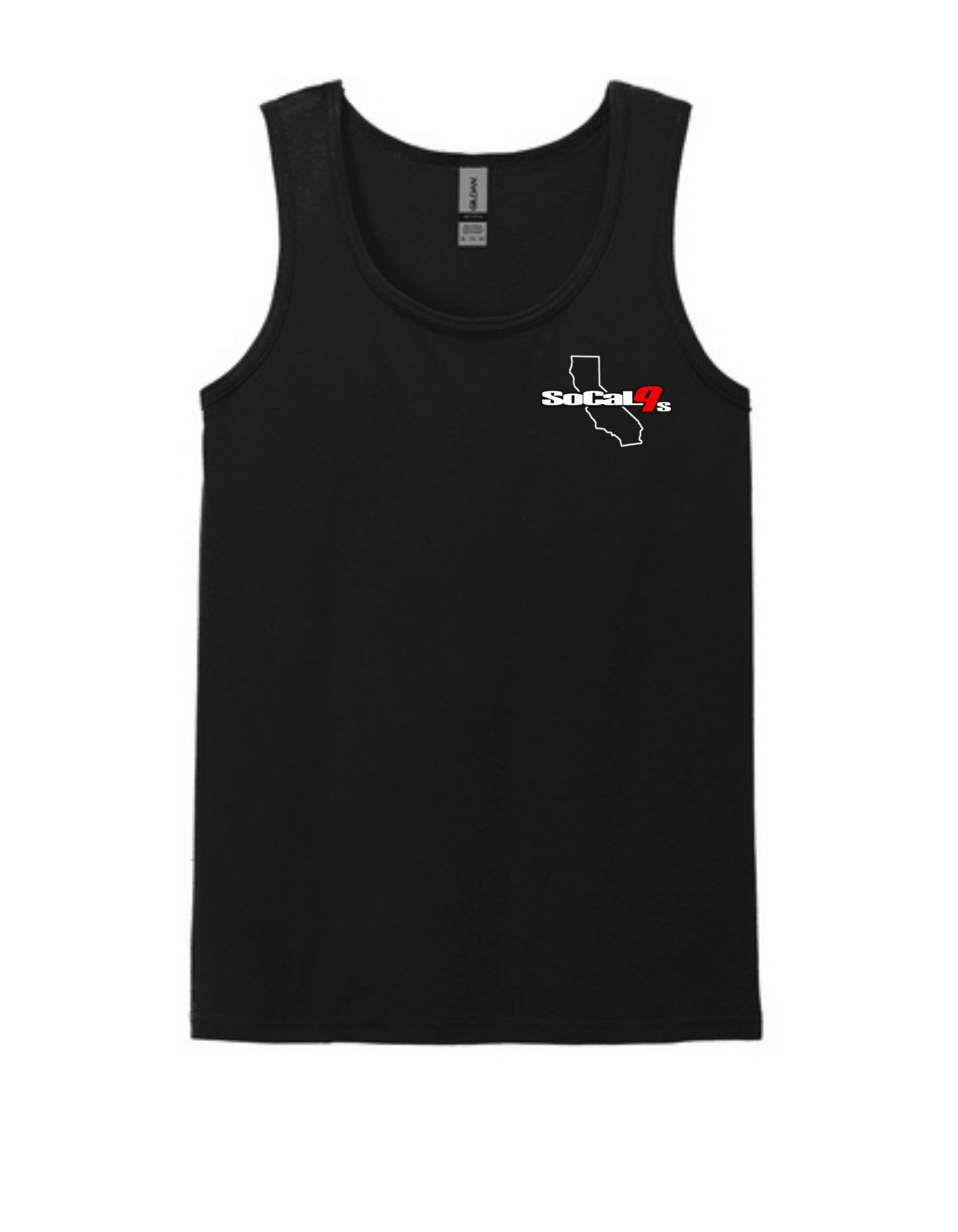 Black tank top with So Cal 9s California Logo on Left Chest and Socal9s logo full back.